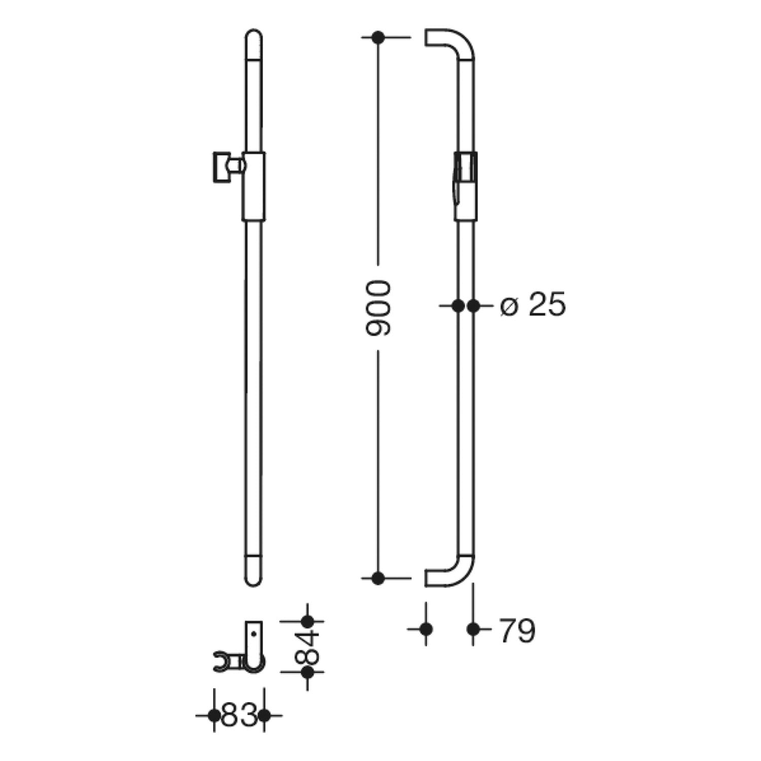 HEWI Serie 480 Brausehalterstange mit Magnetbrausehalter 90 cm