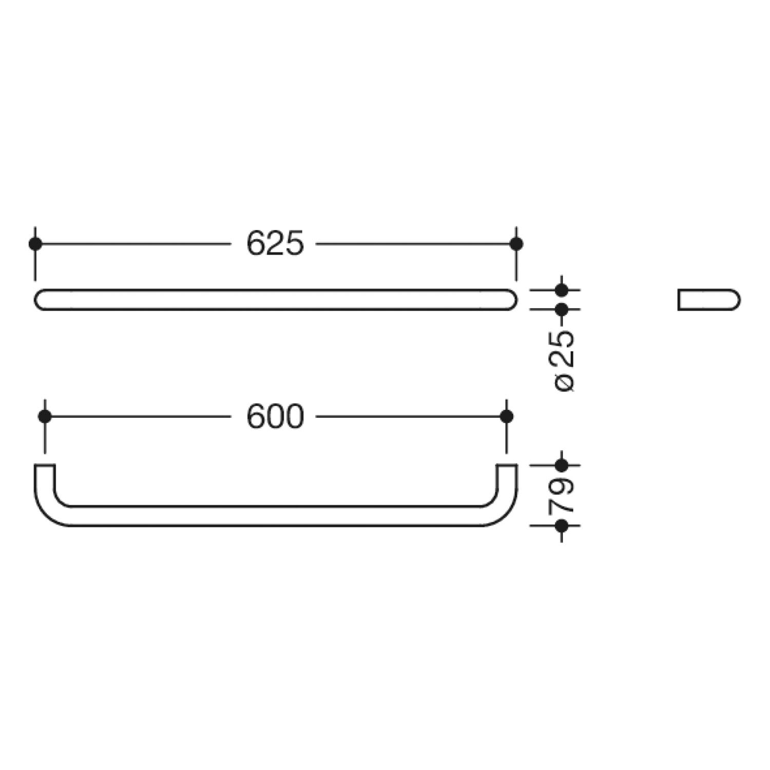 - zylindrische Stange mit bogenförmiger Wandanbindung ohne Befestigungsrosetten