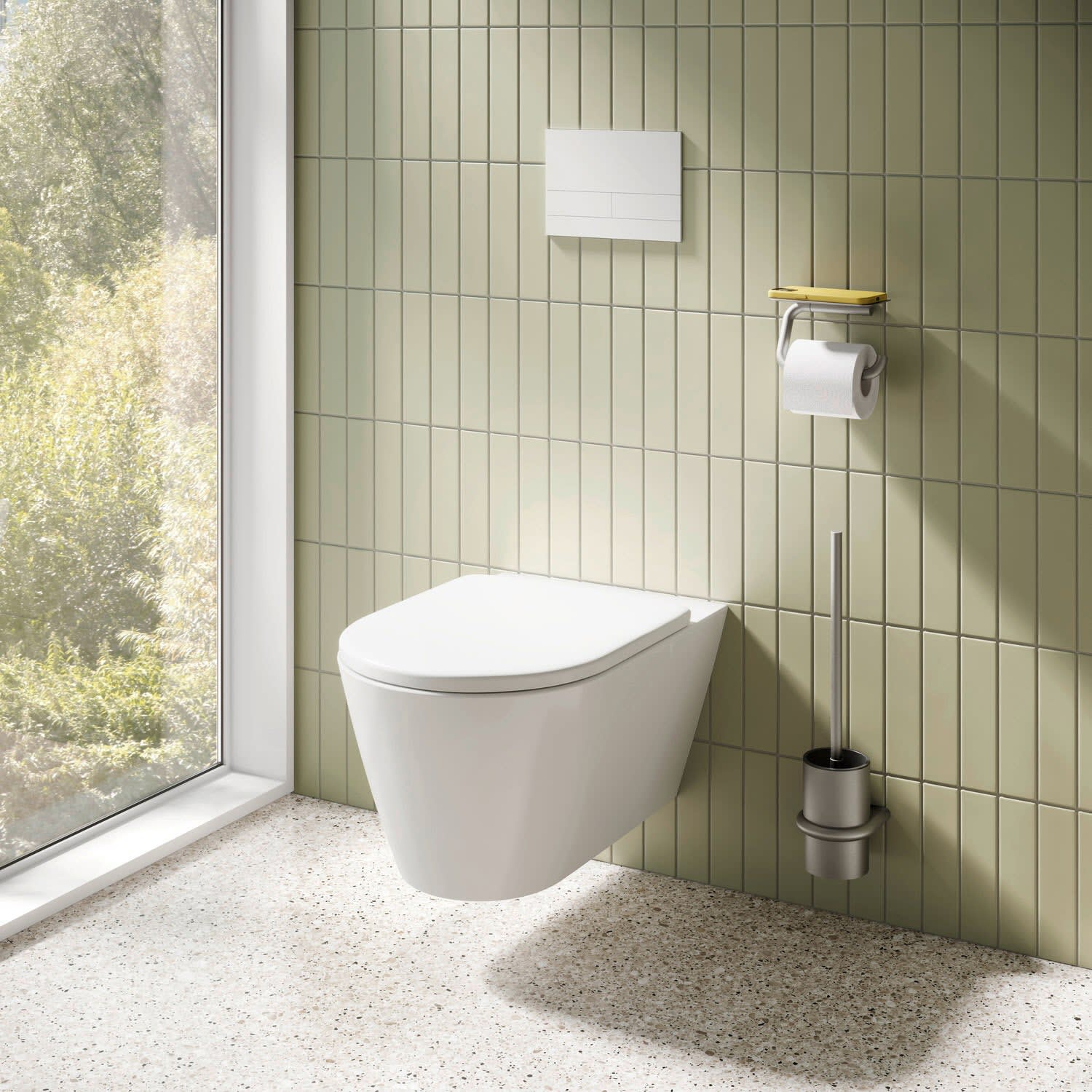 - WC-Bürstengarnitur bestehend aus ringförmigem Halter, zylindrischen WC-Bürstentopf und WC-Bürste