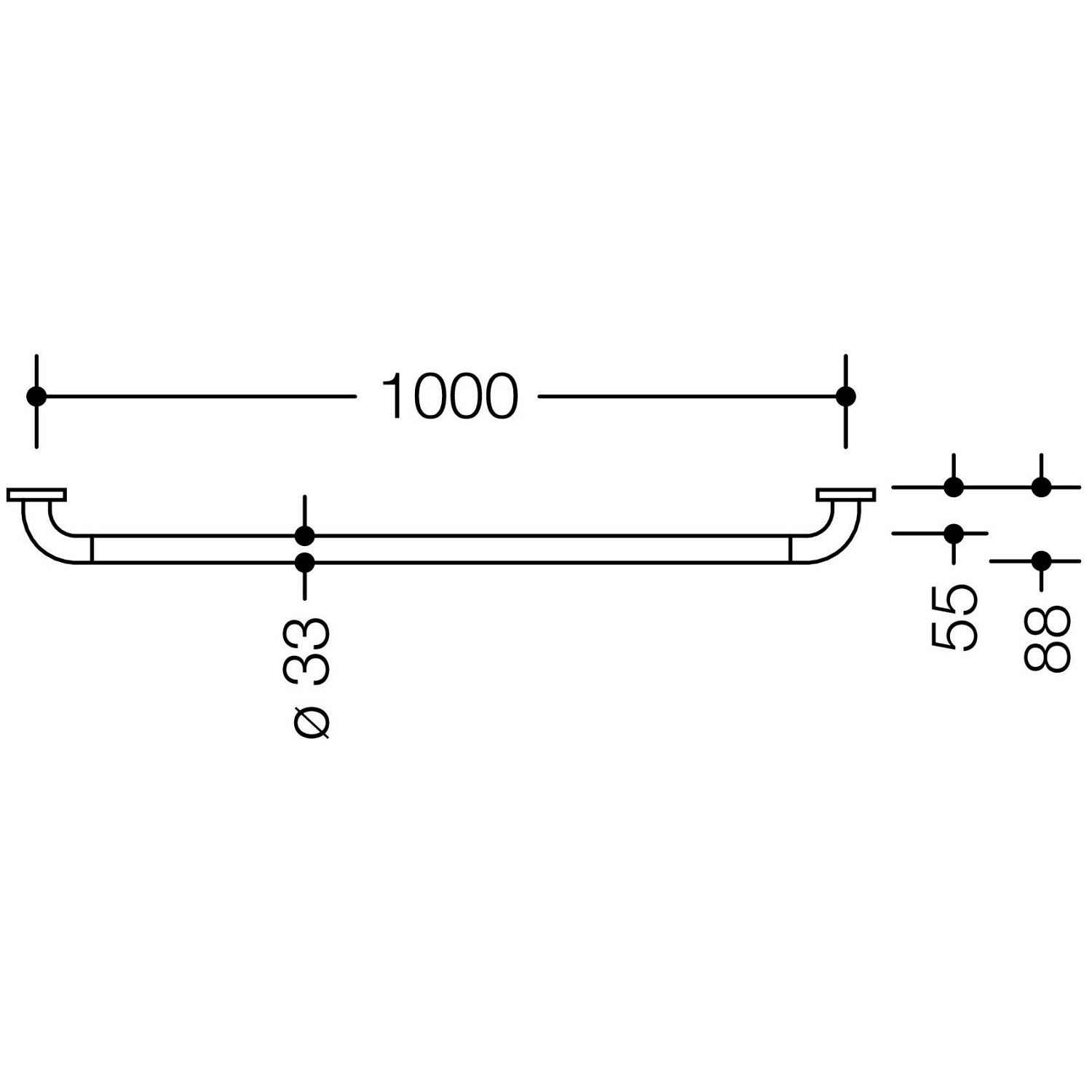 - ab einer Länge von 85,1 cm hat der Haltegriff eine mittig positionierte, zusätzliche Wandbefestigung