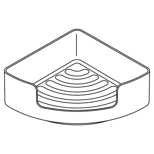 - rechtwinklig mit einem Viertelkreis geformte Ablage mit hohen Seitenwänden und Wasserablauf