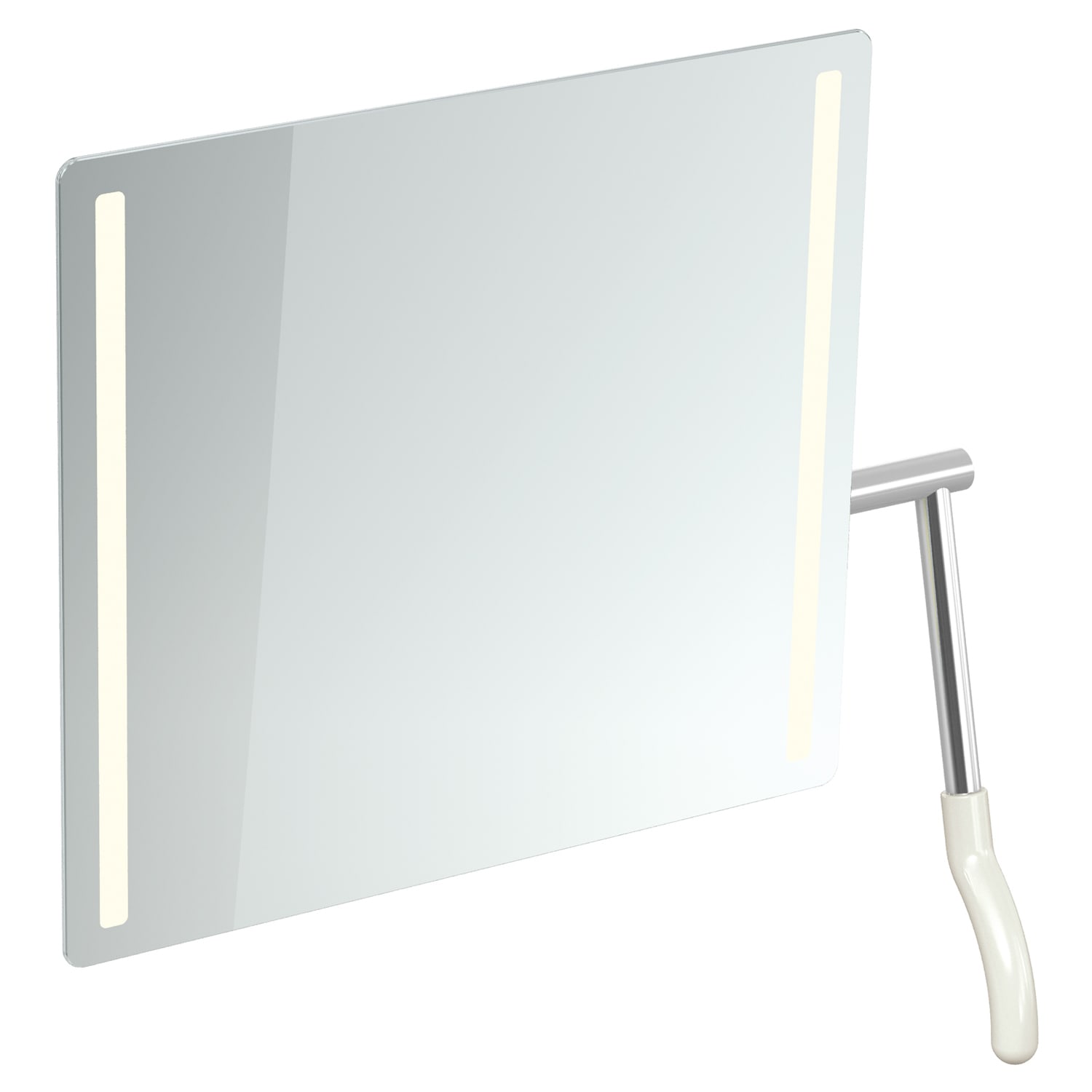 HEWI 802 LifeSystem LED Badspiegel mit LED-Beleuchtung und Hebel rechts in reinweiß, Maße 72,5 x 6,9 x 74,1 cm