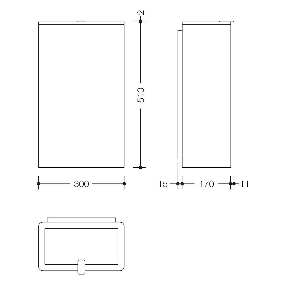 - Einwurföffnung aus hochwertigem Polyamid in den HEWI Farben 90 (Tiefschwarz), 92 (Anthrazitgrau), 98 (Signalweiß) oder 99 (Reinweiß)