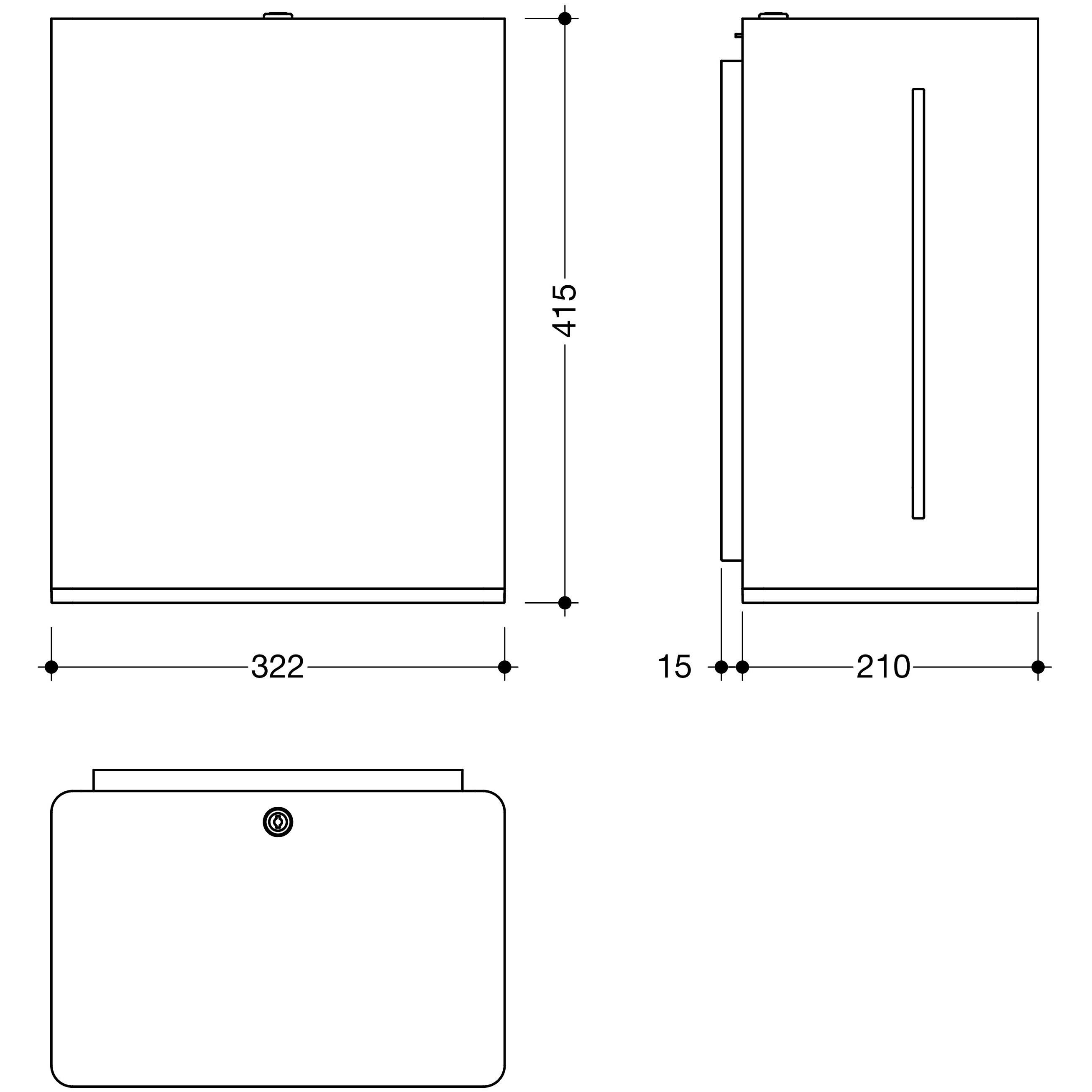 - Entnahmeöffnung aus hochwertigem Polyamid in den HEWI Farben 90 (Tiefschwarz), 92 (Anthrazitgrau), 98 (Signalweiß) oder 99 (Reinweiß)
