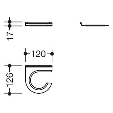 - B: 120 mm, H: 17 mm, T: 126 mm