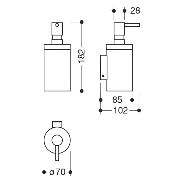 - dient zur Aufnahme handelsüblicher Flüssigseife, Desinfektionsmittel und -gele