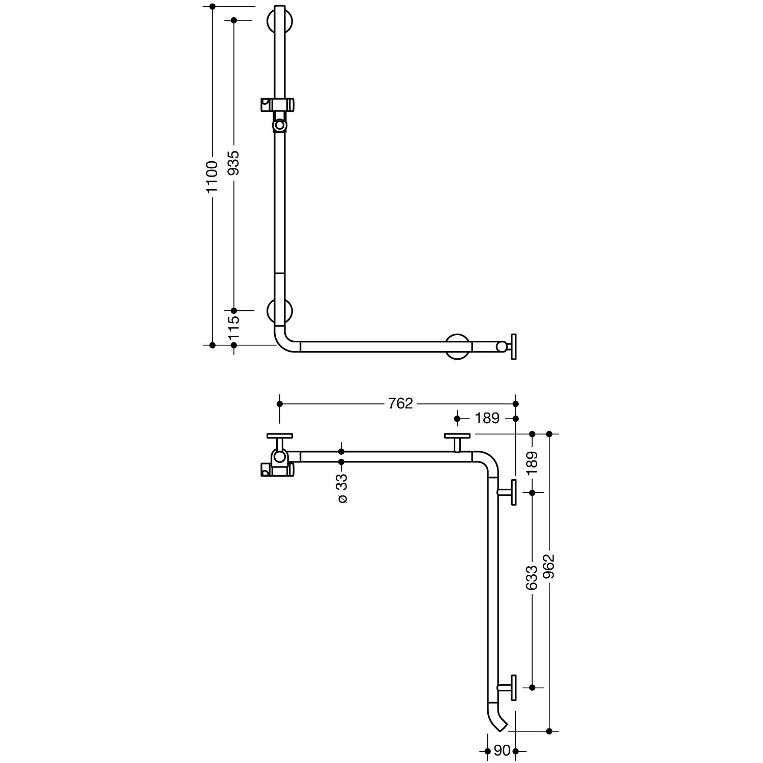 HEWI System 800K Duschhandlauf mit Brausehalterstange