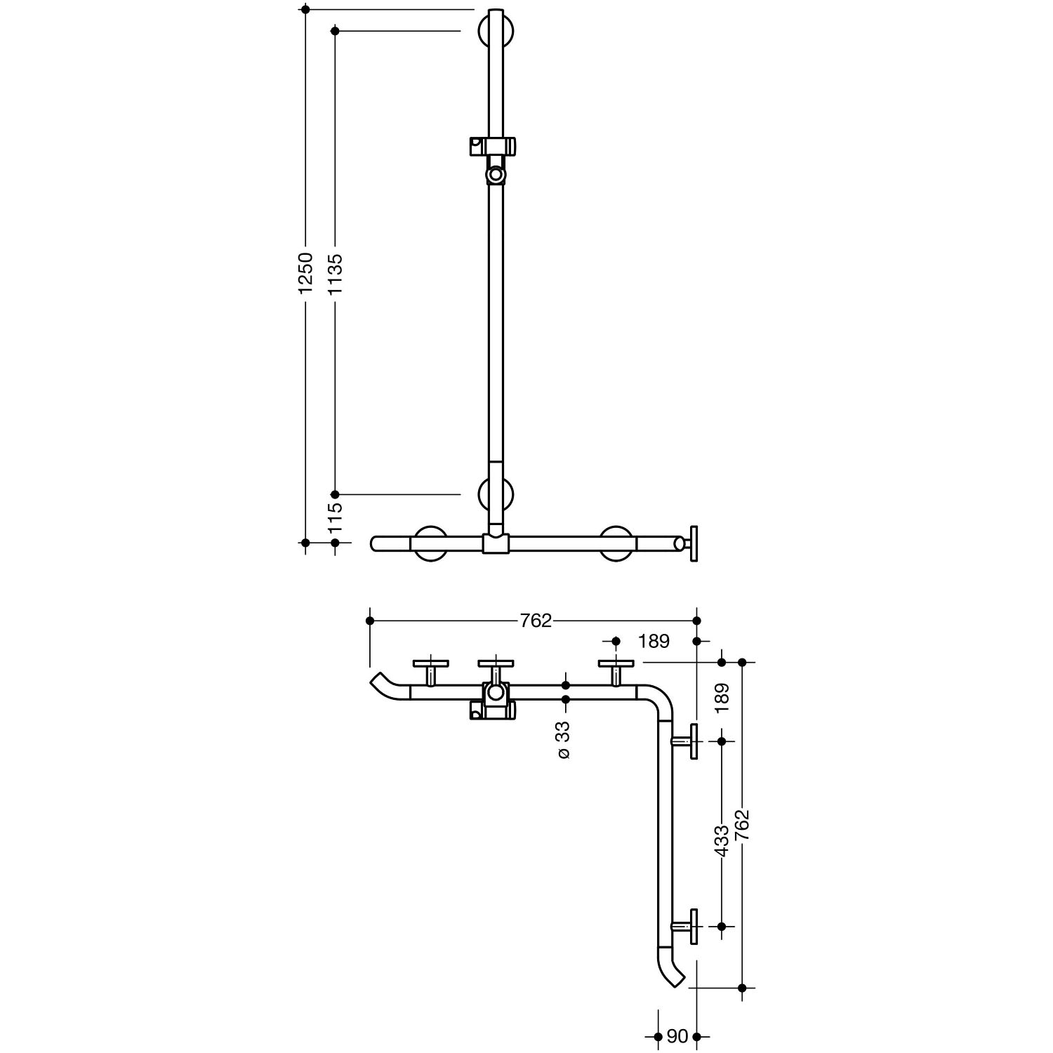 - senkrecht und waagerecht angeordnete, im rechten Winkel verbundene Stangen mit Brausehalter