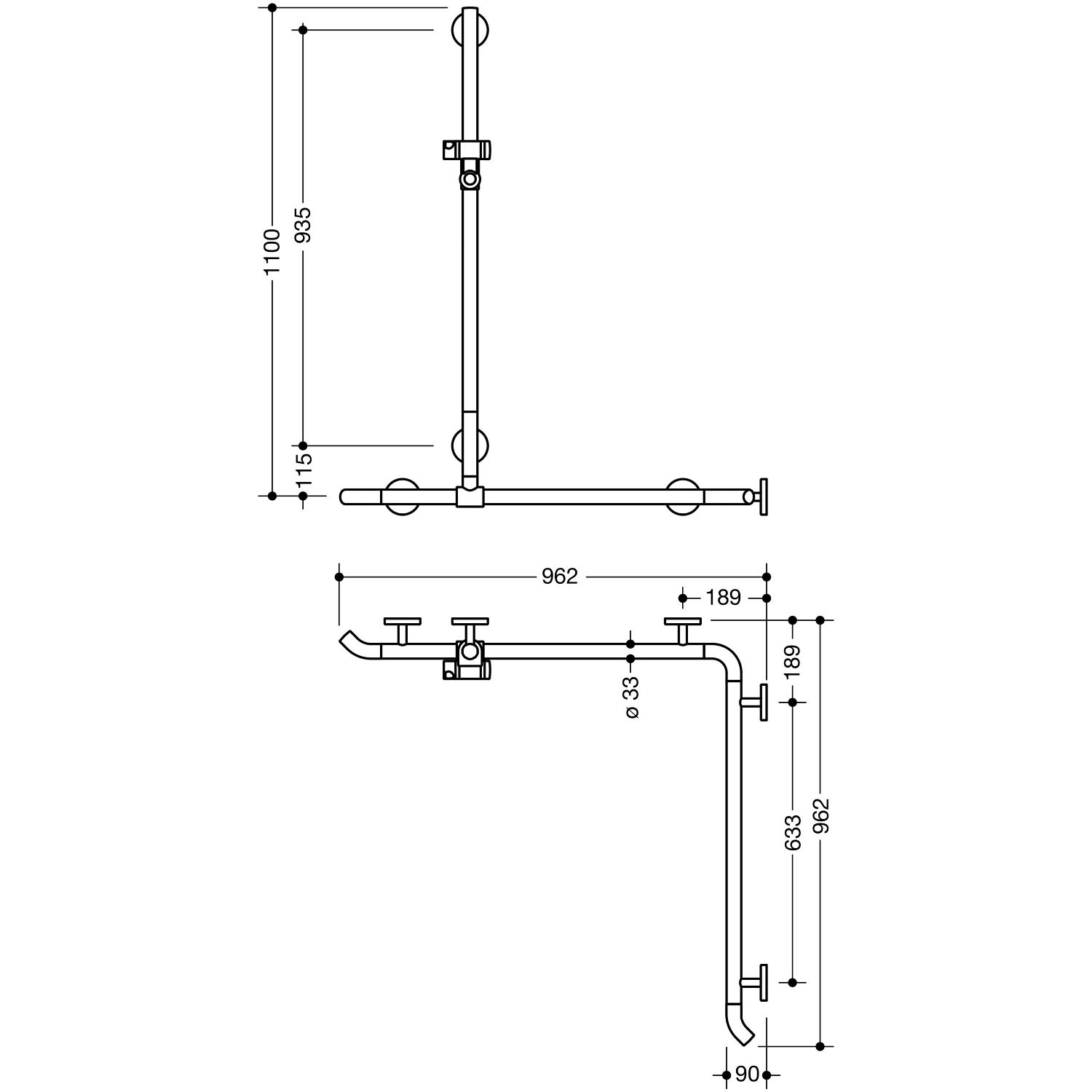 - senkrecht und waagerecht angeordnete, im rechten Winkel verbundene Stangen mit Brausehalter