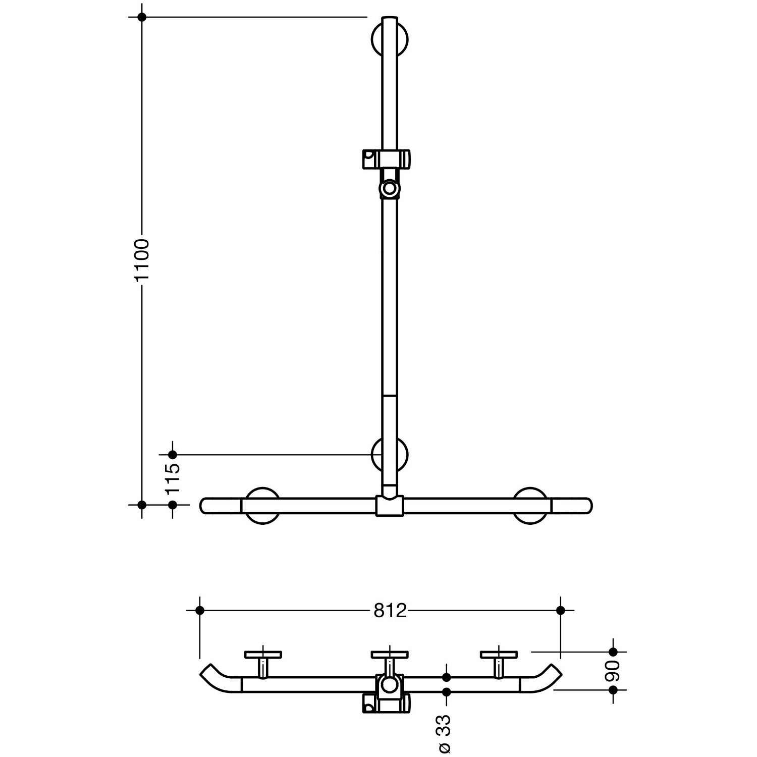 HEWI System 800K Duschhandlauf mit verschiebbarer Brausehalterstange