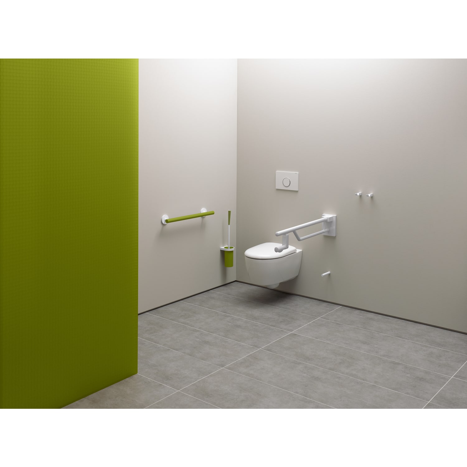 - mit WC-Papierhalter 950.50.01090, WC-Papierhalter mit WC-Spülauslösung und Funktionstaste (Funk) 950.50.06290, 950.50.06390 sowie Bodenstützen 950.50.020XA, 950.50.025XA und 950.50.026XA nachrüstbar