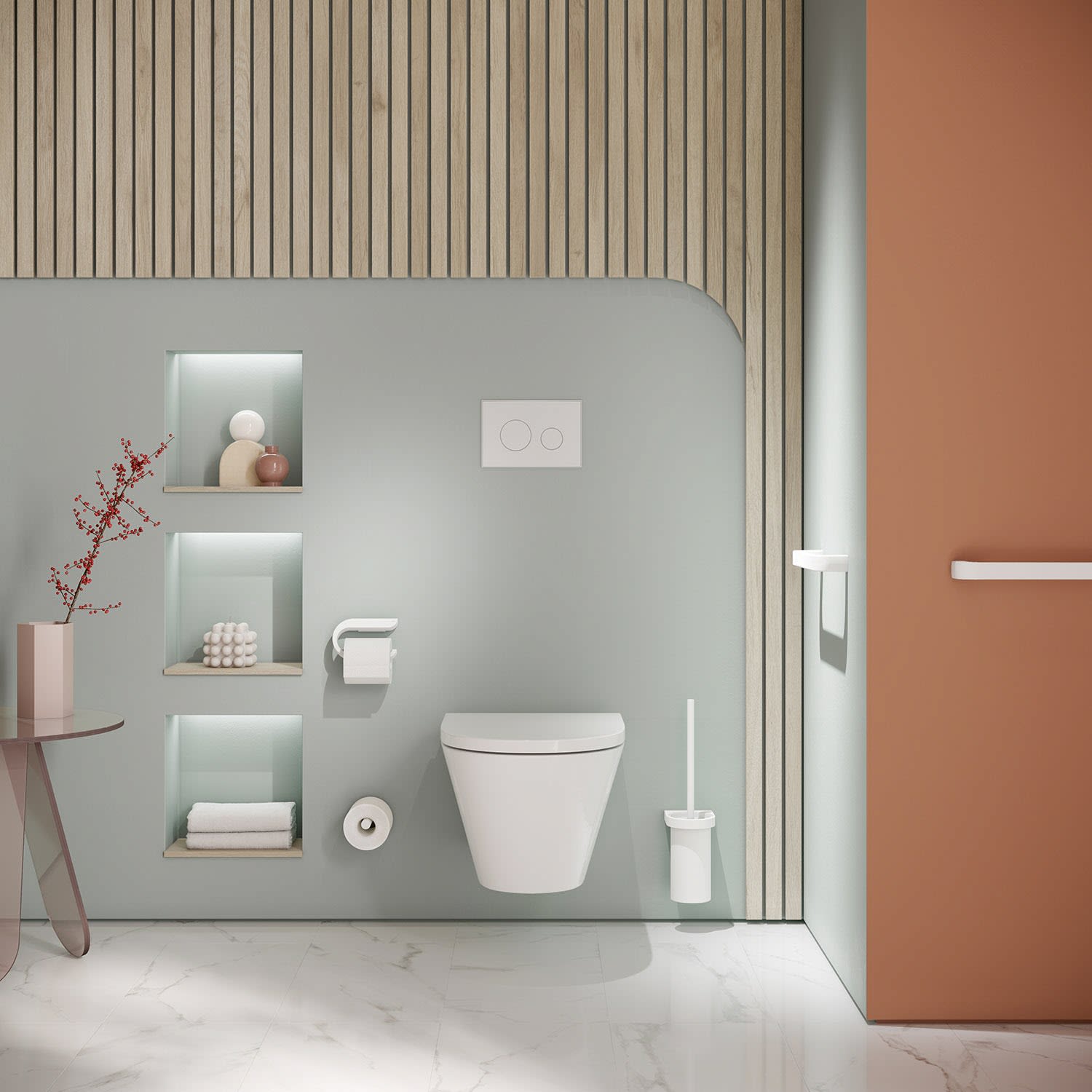 - U-förmiger, nach rechts geöffneter WC-Papierhalter