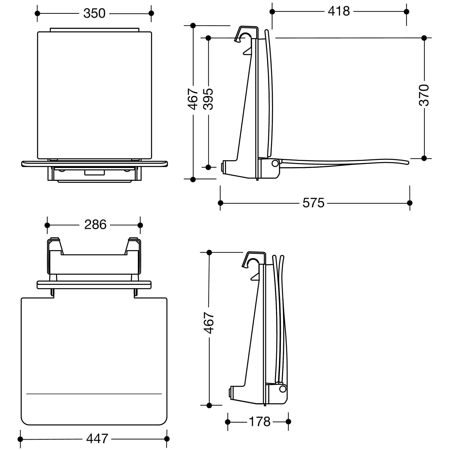 - Sitzfläche kann platzsparend hochgeklappt werden