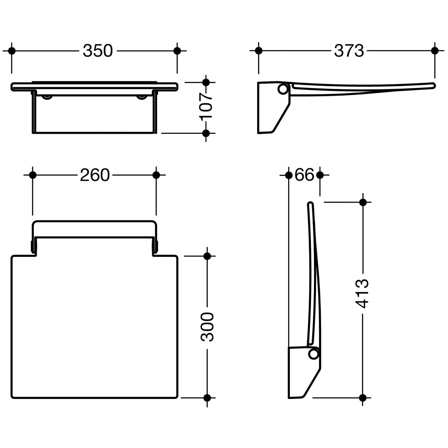 - Sitztiefe im hochgeklappten Zustand: 6,6 cm