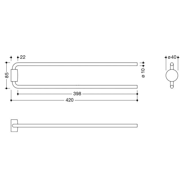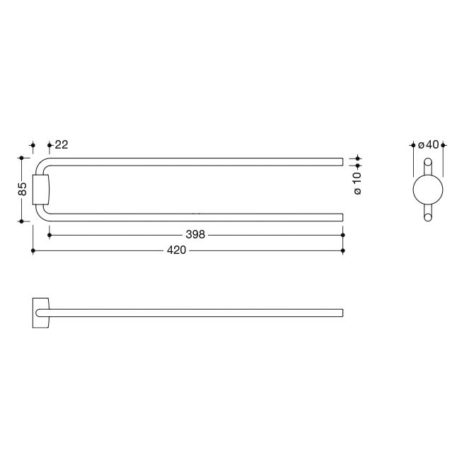 - Handtuchhalter mit zwei übereinander angeordneten, zylindrischen Haltearmen
