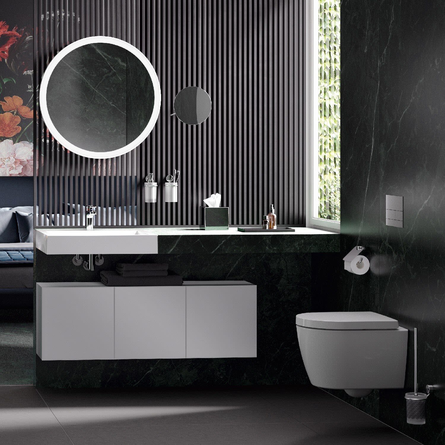 - zur Wandmontage, verdeckte Rosettenbefestigung
