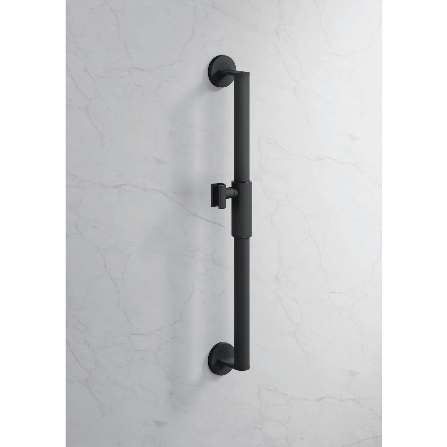 - senkrechte Stange mit zur Wand ausgeführten Stützen, Befestigungsrosetten und magnetischem Brausehalter