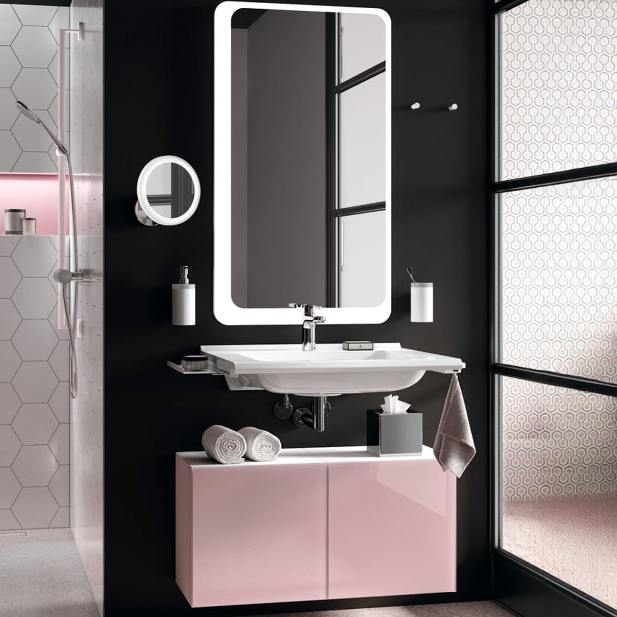 HEWI System 900 LED Kosmetikspiegel rund, mit Dual Light, 5-fach Vergrößerung
