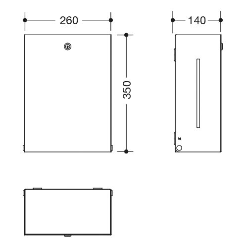 - dient zur Aufnahme von handelsüblichen Papierhandtüchern verschiedener Falzungen in der Breite 23,5 - 25 cm und gefalteter Länge / Tiefe von 8 - 11 cm (HEWI empfiehlt Papierhandtücher mit Z-Falz)