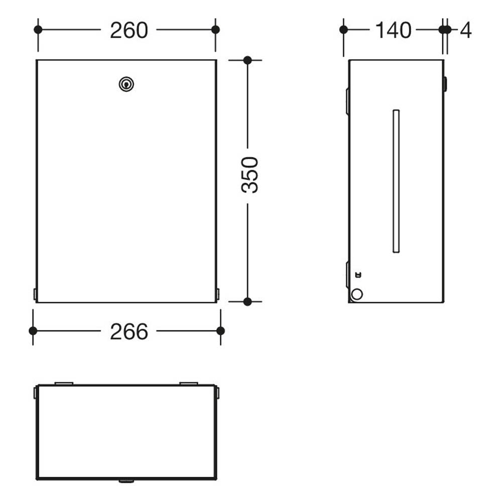 - dient zur Aufnahme von handelsüblichen Papierhandtüchern verschiedener Falzungen in der Breite von 235 - 250 mm und gefalteter Länge / Tiefe von 80 - 110 mm (HEWI empfiehlt Papierhandtücher mit Z-Falz)