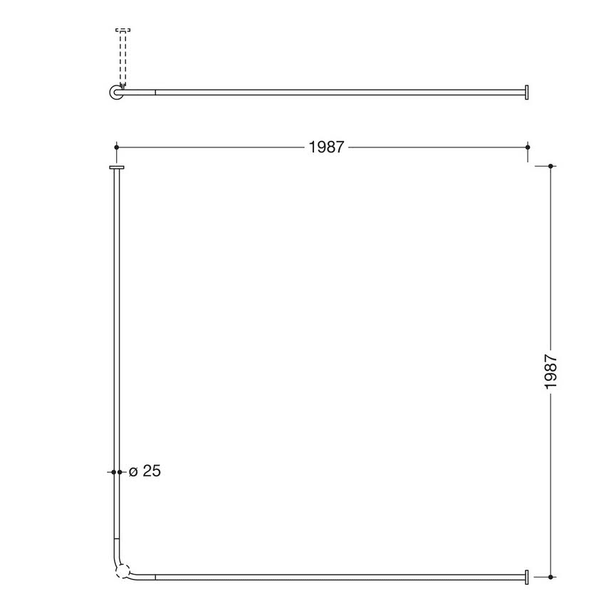 HEWI System 900 Vorhangstange für Duschwanne 200 x 200 cm