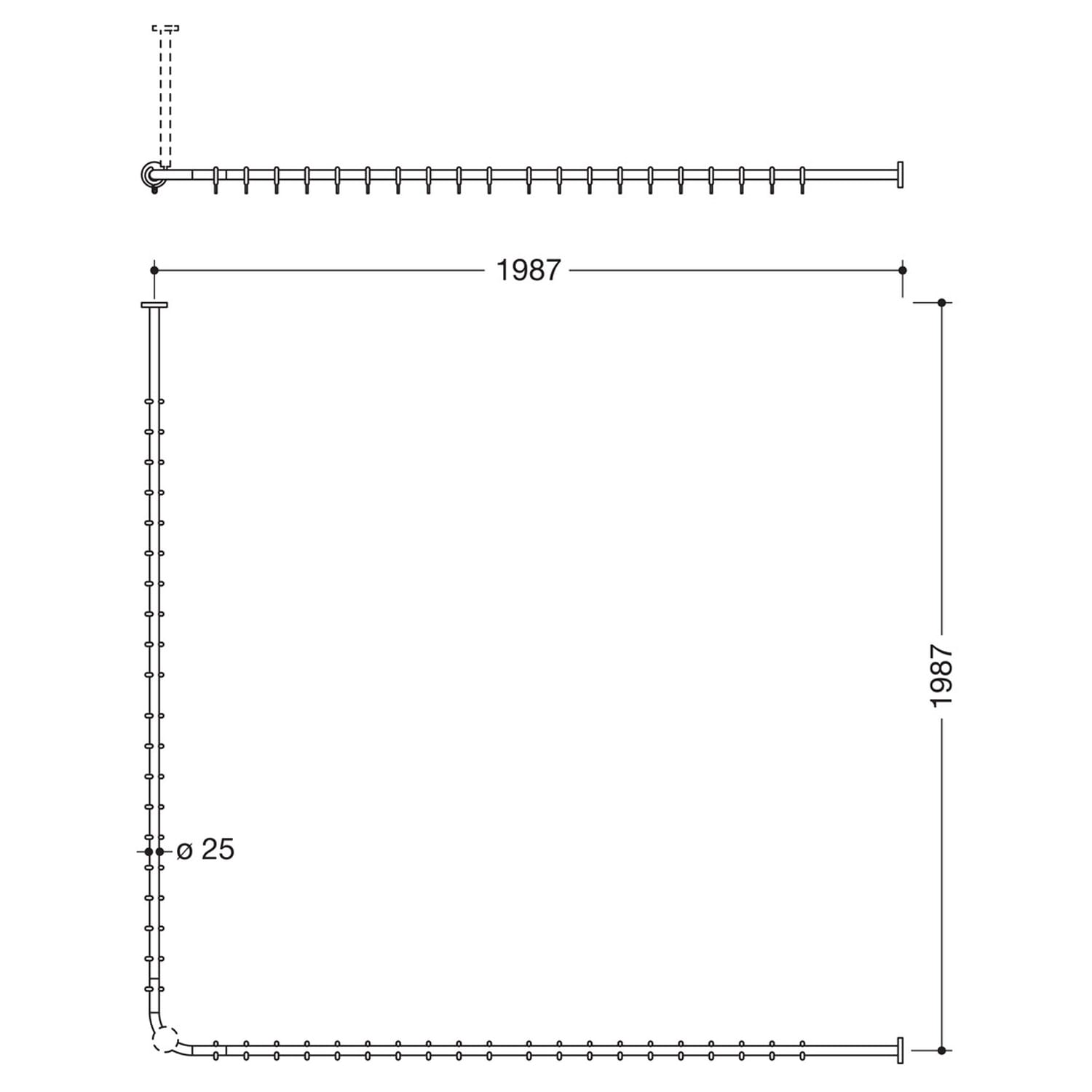HEWI System 900 Vorhangstange für Duschwanne 200 x 200 cm