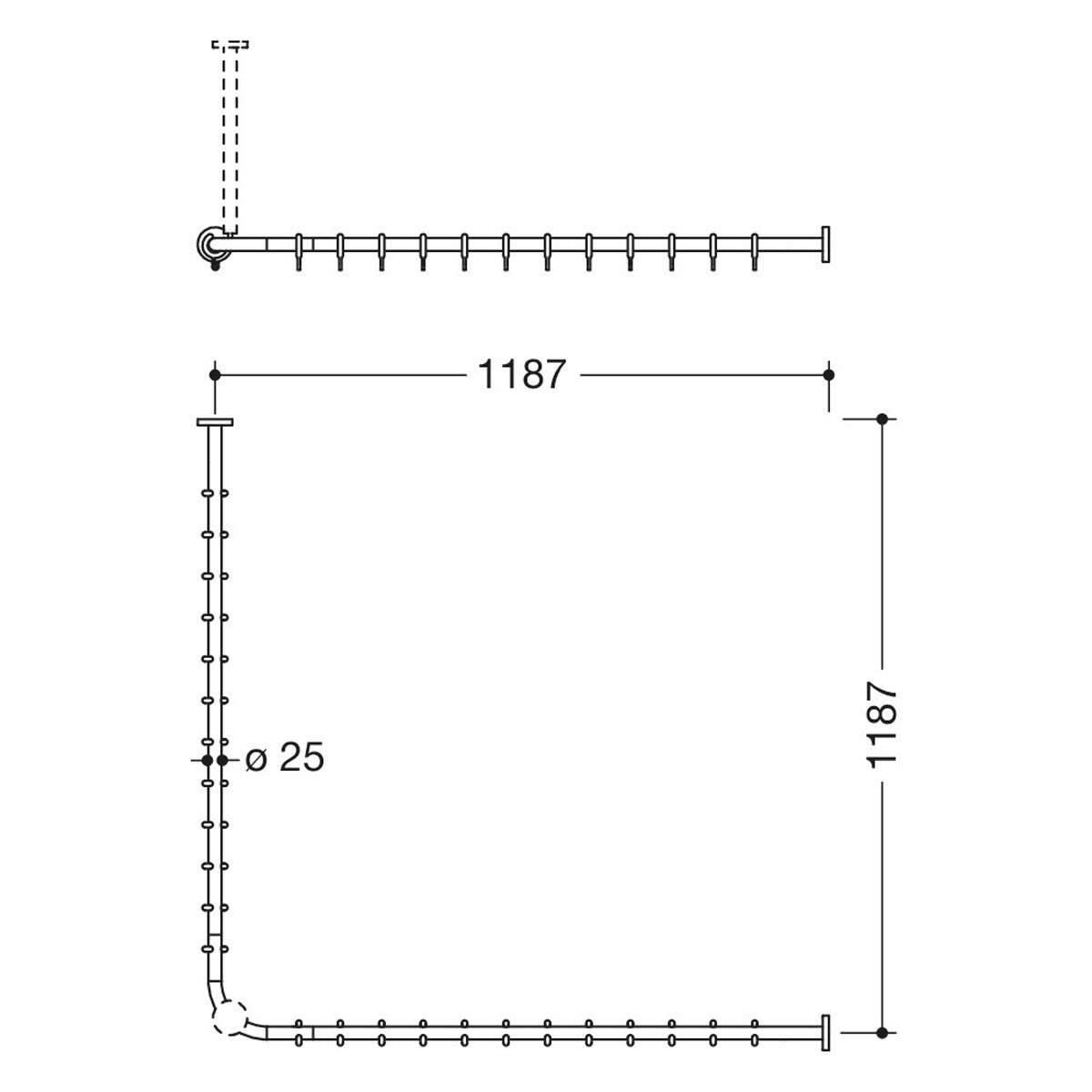 HEWI System 900 Vorhangstange für Duschwanne 120 x 120 cm