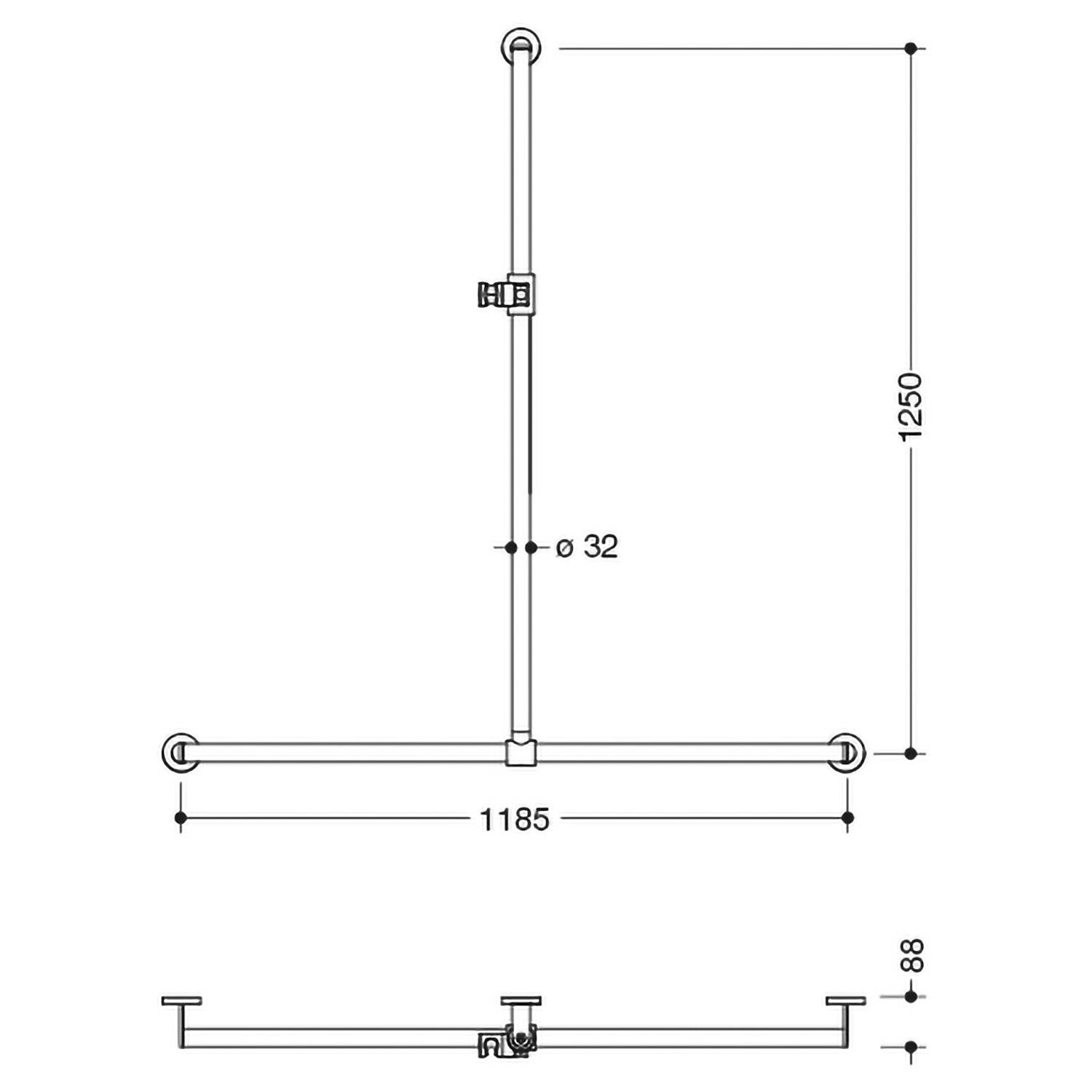 HEWI System 900 Duschhandlauf, 125 x 118,5 x 8,8 cm