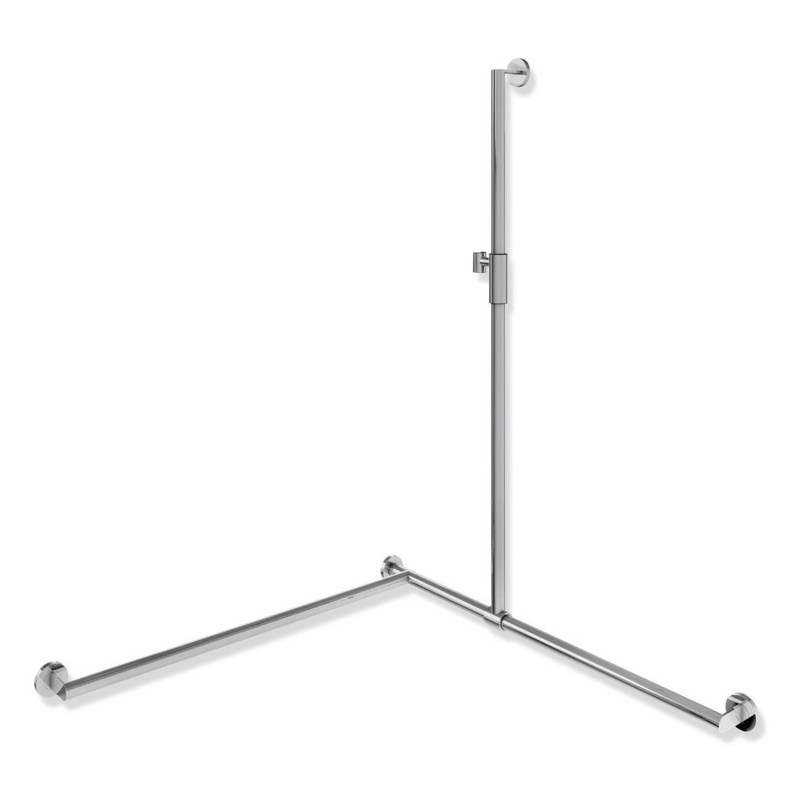 - senkrecht und waagerecht angeordnete, im rechten Winkel verbundene Stangen mit Befestigungsrosetten und magnetischem Brausehalter