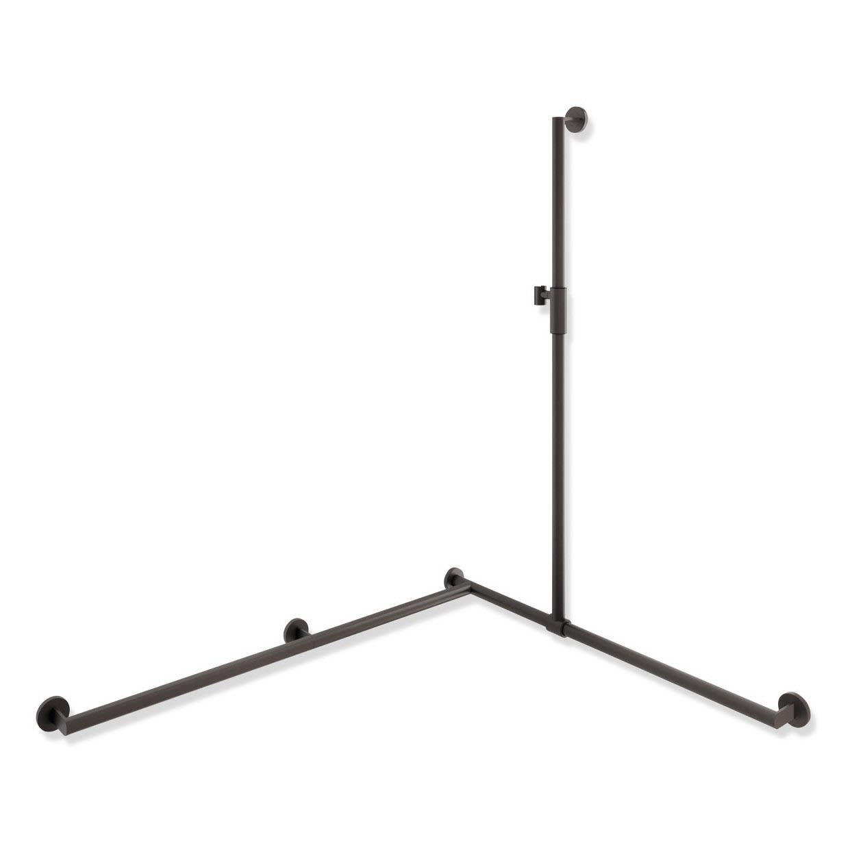 - senkrecht und waagerecht angeordnete, im rechten Winkel verbundene Stangen mit Befestigungsrosetten und magnetischem Brausehalter