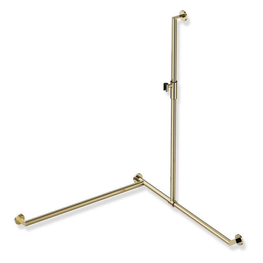 - senkrecht und waagerecht angeordnete, im rechten Winkel verbundene Stangen mit Befestigungsrosetten und magnetischem Brausehalter