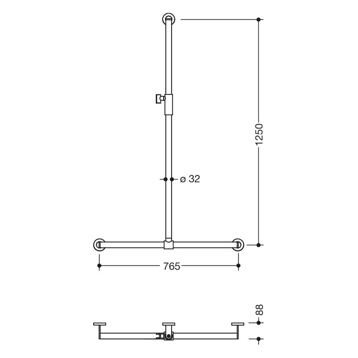 HEWI System 900 Duschhandlauf mit verschiebbarer Brausehalterstange mit Magnetbrausehalter 76,5 cm