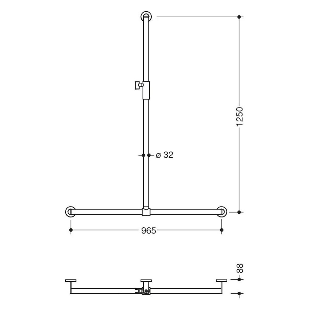 HEWI System 900 Duschhandlauf mit verschiebbarer Bausehalterstange mit Magnetbrausehalter 96,5 cm