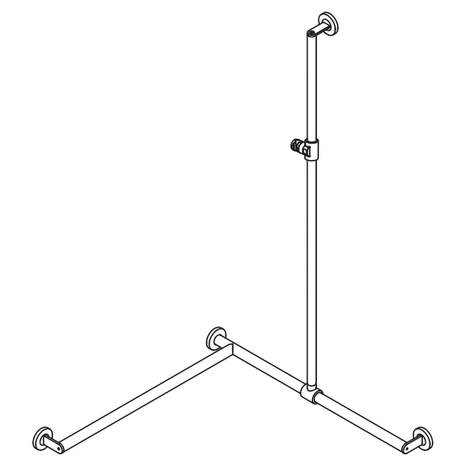 - senkrecht und waagerecht angeordnete, im rechten Winkel verbundene Stangen mit Befestigungsrosetten und Brausehalter