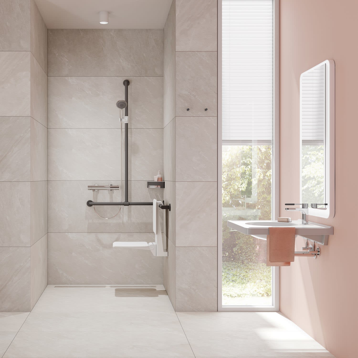 - inklusive korrosionsfreiem und geprüftem HEWI Befestigungsmaterial zur Wandmontage sowie Dichtband zur Abdichtung der Bohrpunkte