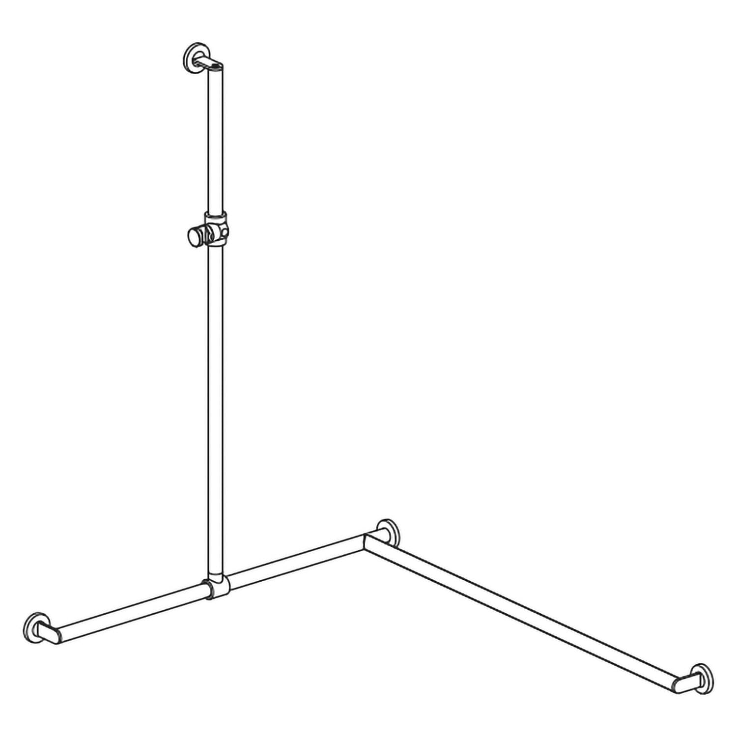 - senkrecht und waagerecht angeordnete, im rechten Winkel verbundene Stangen mit Befestigungsrosetten und Brausehalter