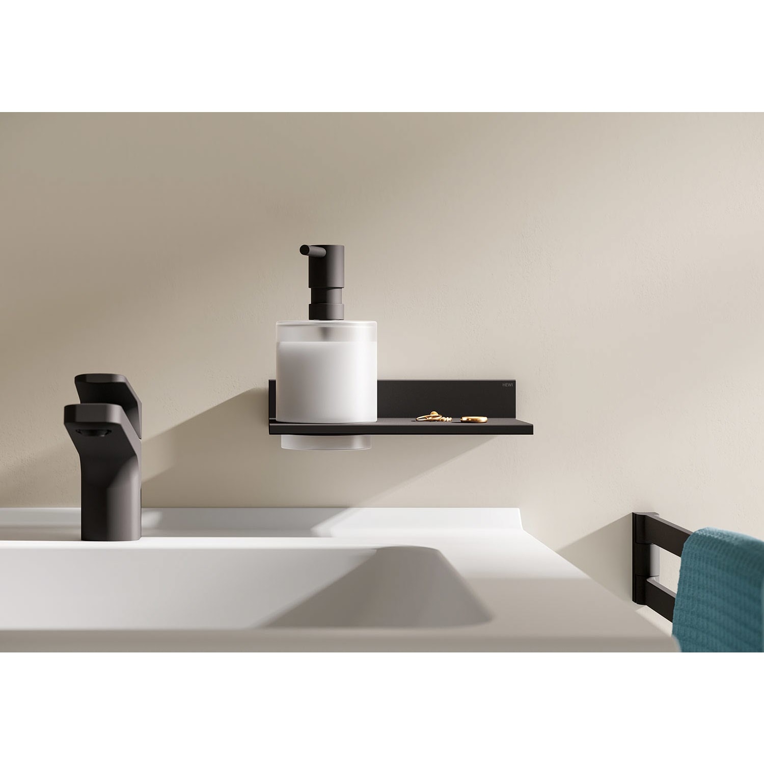 HEWI System 900 Q Ablage mit Seifen- oder Desinfektionsmittelspender