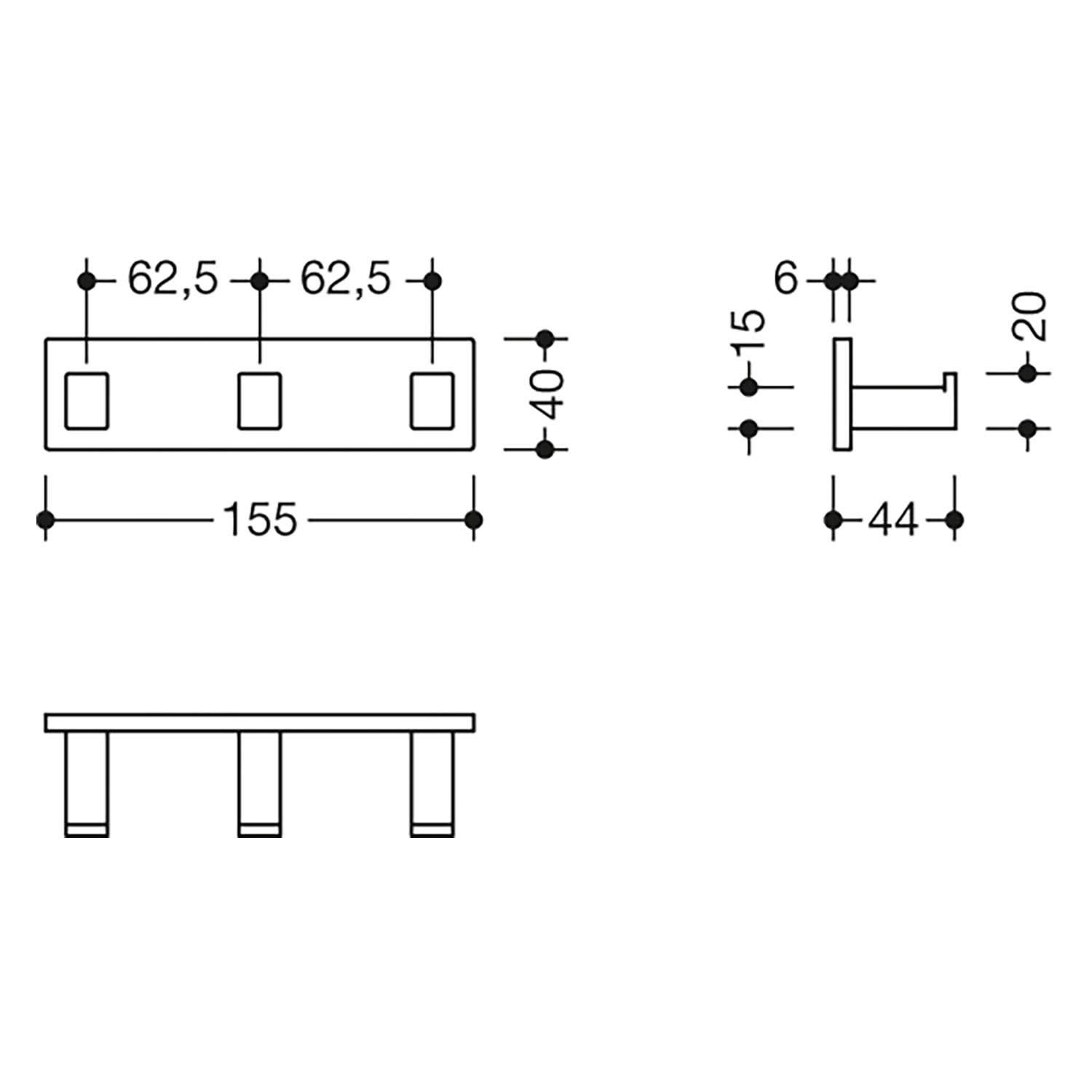- Hakenleiste mit drei Haken im geometrischen Vierkantdesign