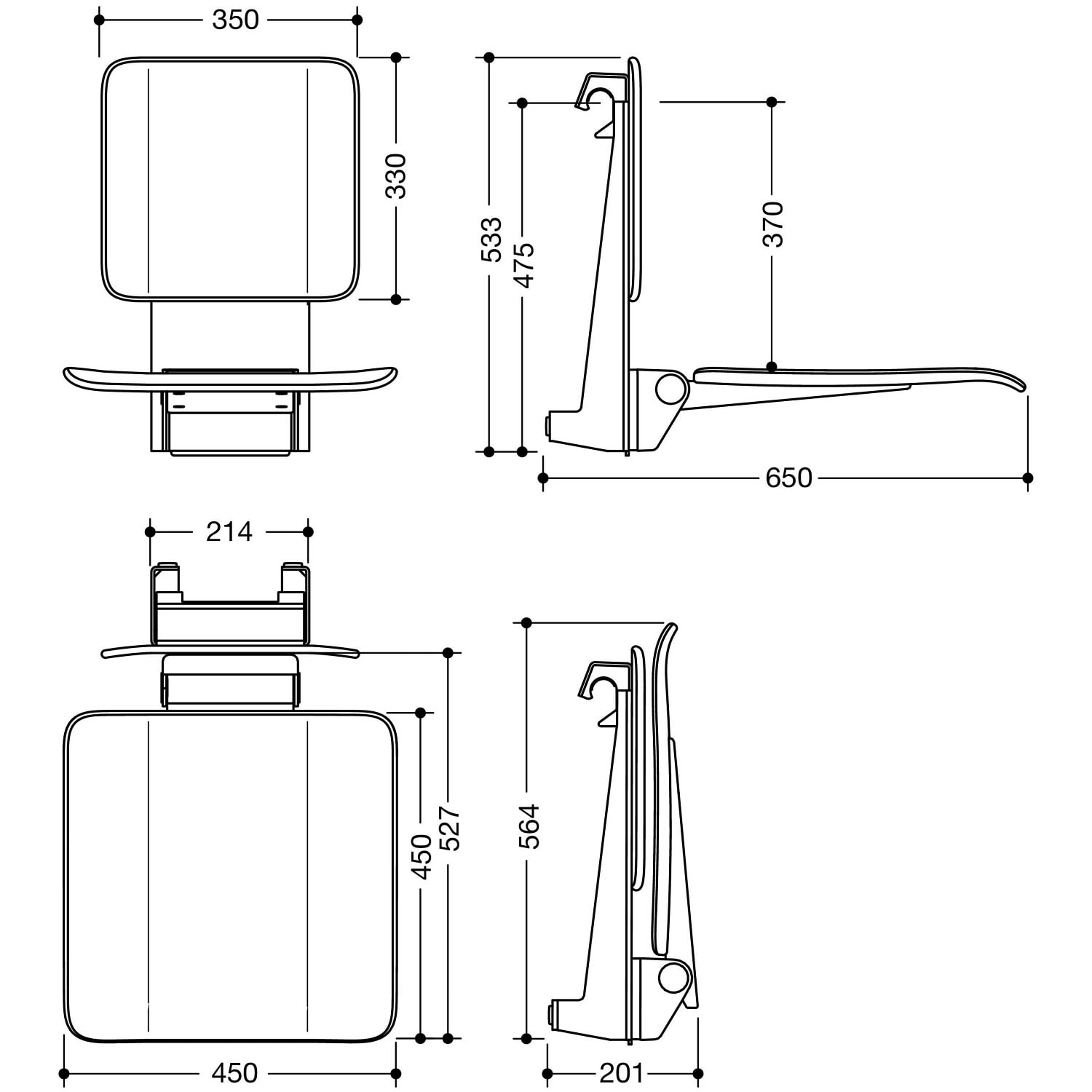 - rutschhemmende, strukturierte Sitzfläche und Rückenlehne aus mattem Kunststoff in Farbe der Einhängevorrichtung