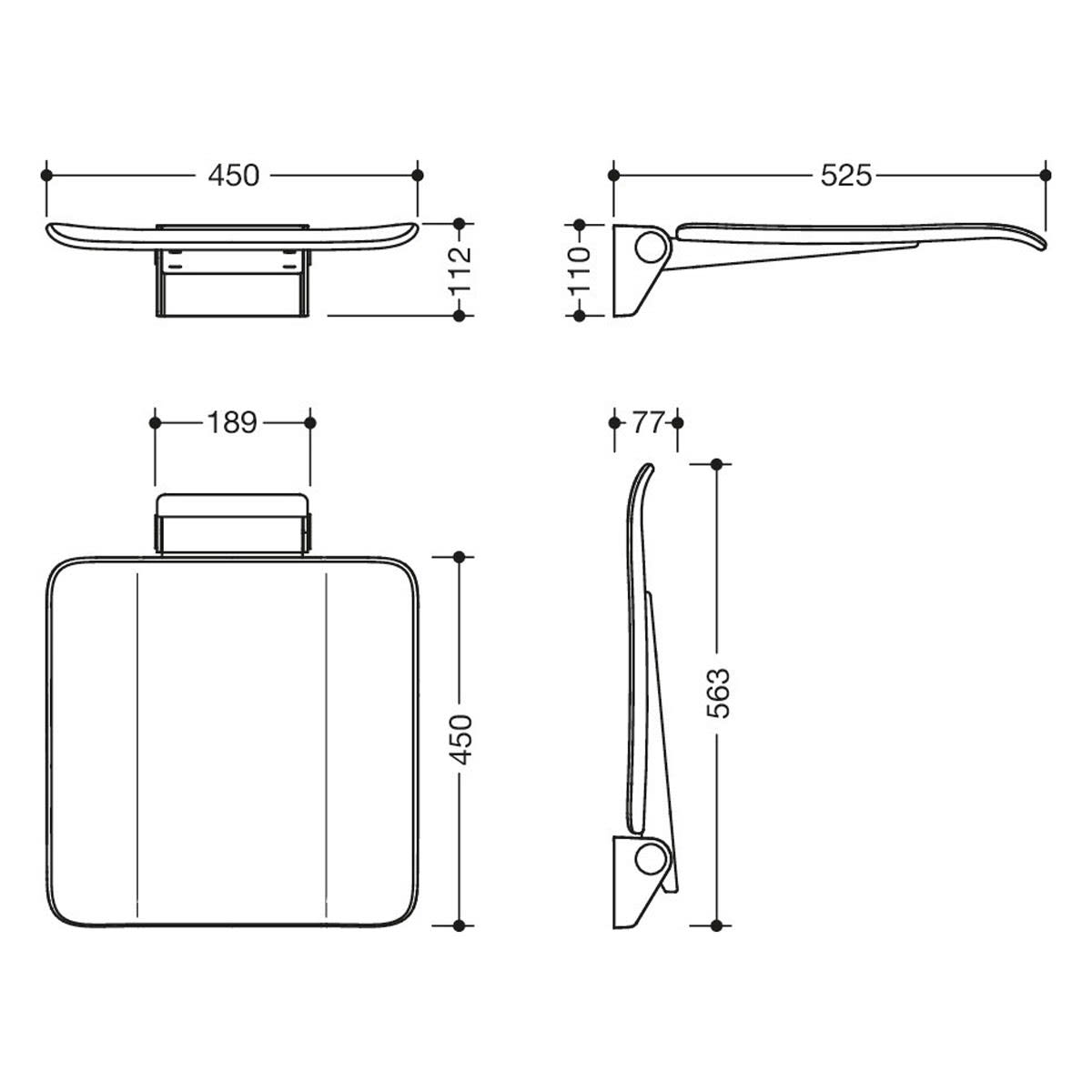 - Sitztiefe im hochgeklappten Zustand 77 mm