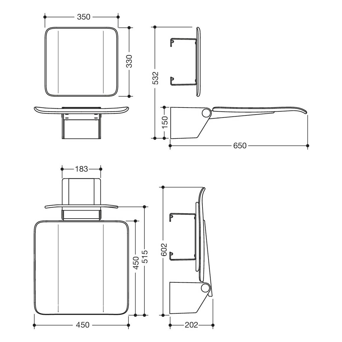 - Sitzfläche kann platzsparend hochgeklappt werden