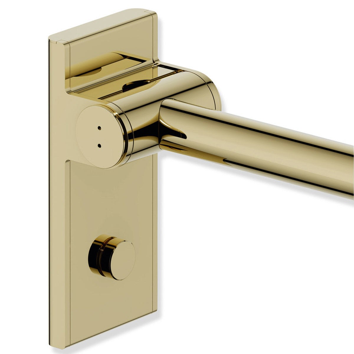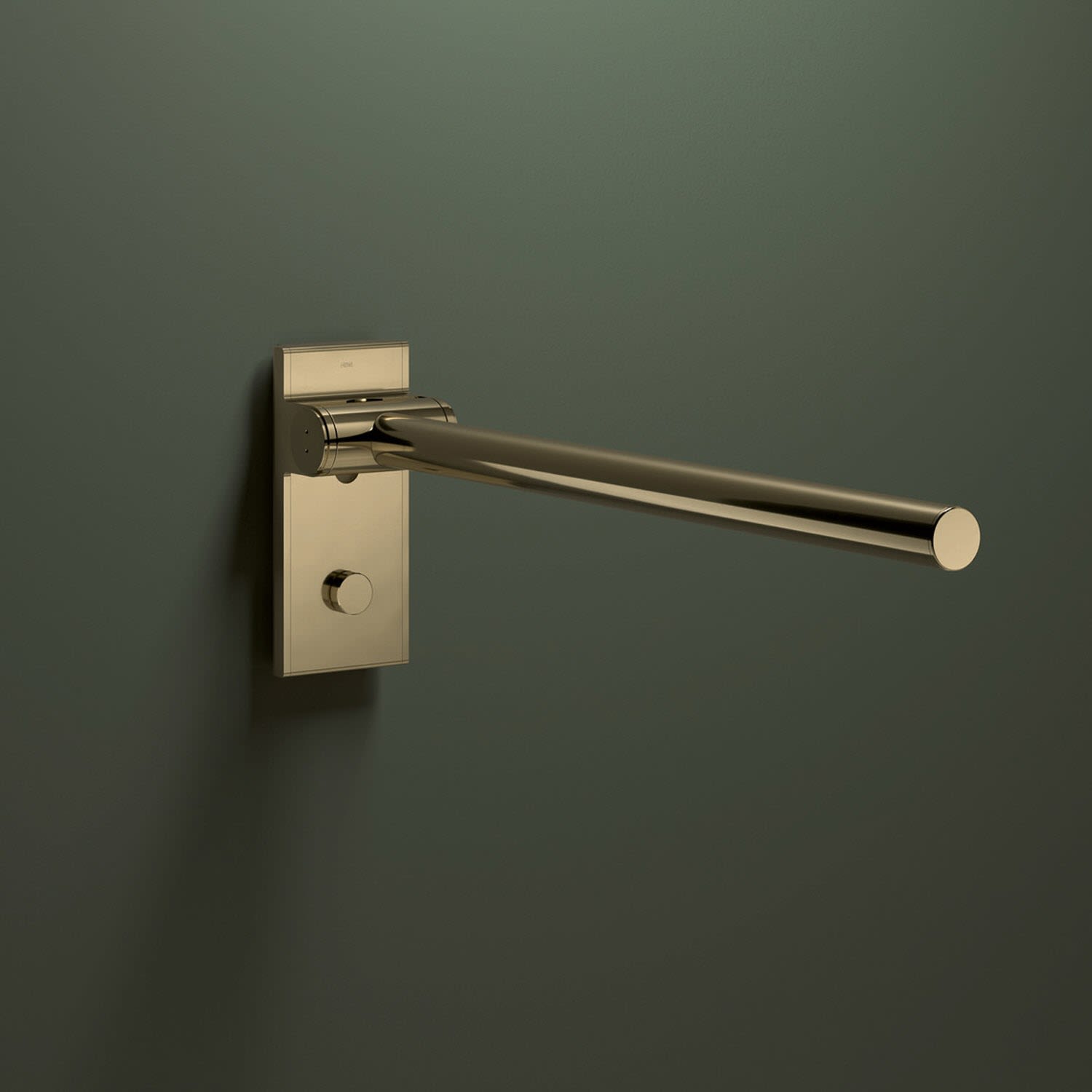 Die Stützklappgriffe von System 900 verfügen über eine wartungsfreie Bremse. Diese dämpft das Absenken des Stützklappgriffs. Der Holm lässt sich mit geringem Kraftaufwand nach oben und unten bewegen. Ist der Winkel größer als 45 °, verweilt der Stützklappgriff in jeder beliebigen Position und kann mit geringer Kraft abgesenkt oder zur Wand geklappt werden. Ab einem Winkel von 45 ° senkt sich der Holm automatisch sanft ab.