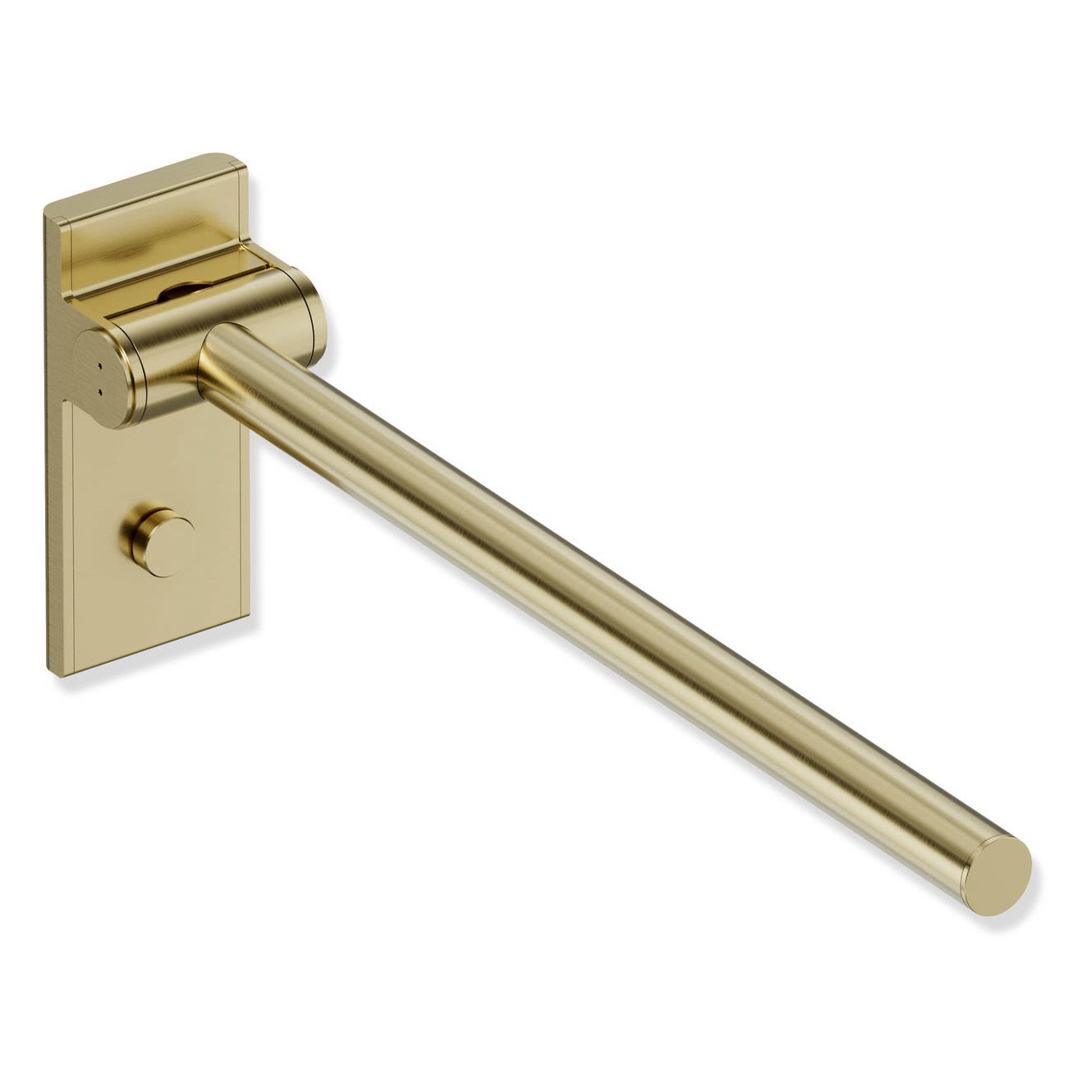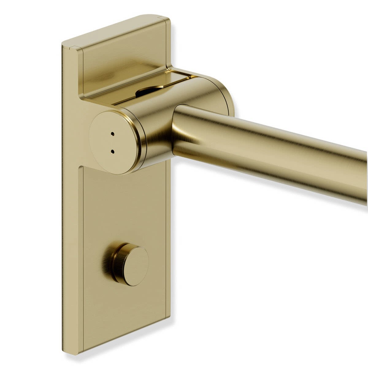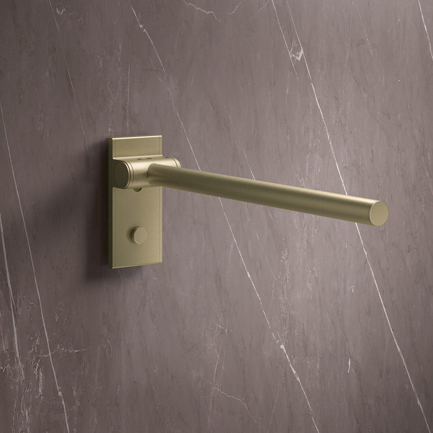 Die Stützklappgriffe von System 900 verfügen über eine wartungsfreie Bremse. Diese dämpft das Absenken des Stützklappgriffs. Der Holm lässt sich mit geringem Kraftaufwand nach oben und unten bewegen. Ist der Winkel größer als 45 °, verweilt der Stützklappgriff in jeder beliebigen Position und kann mit geringer Kraft abgesenkt oder zur Wand geklappt werden. Ab einem Winkel von 45 ° senkt sich der Holm automatisch sanft ab.