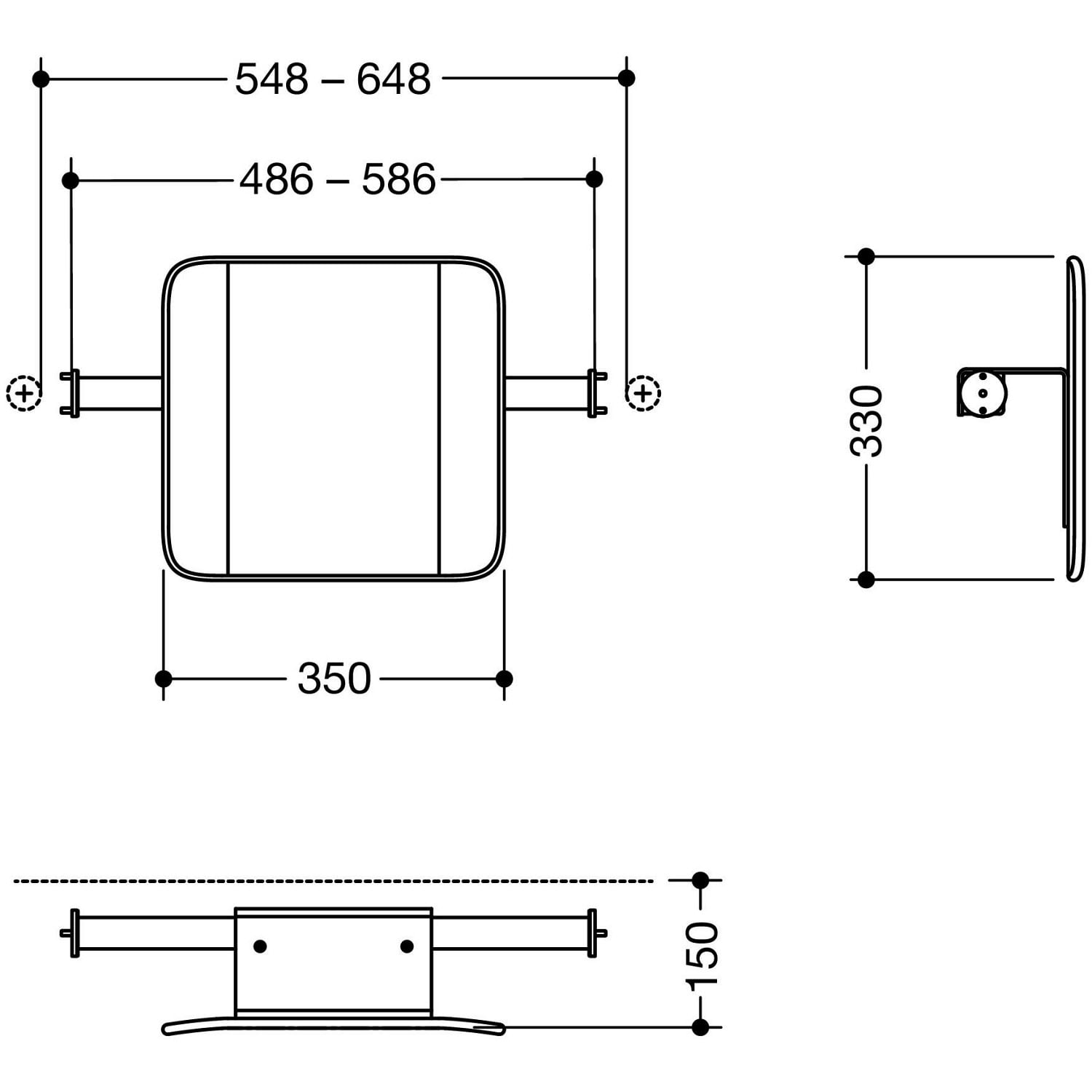HEWI System 900 Rückenstütze Design A, Achsmaß 48,6 bis 58,6 cm