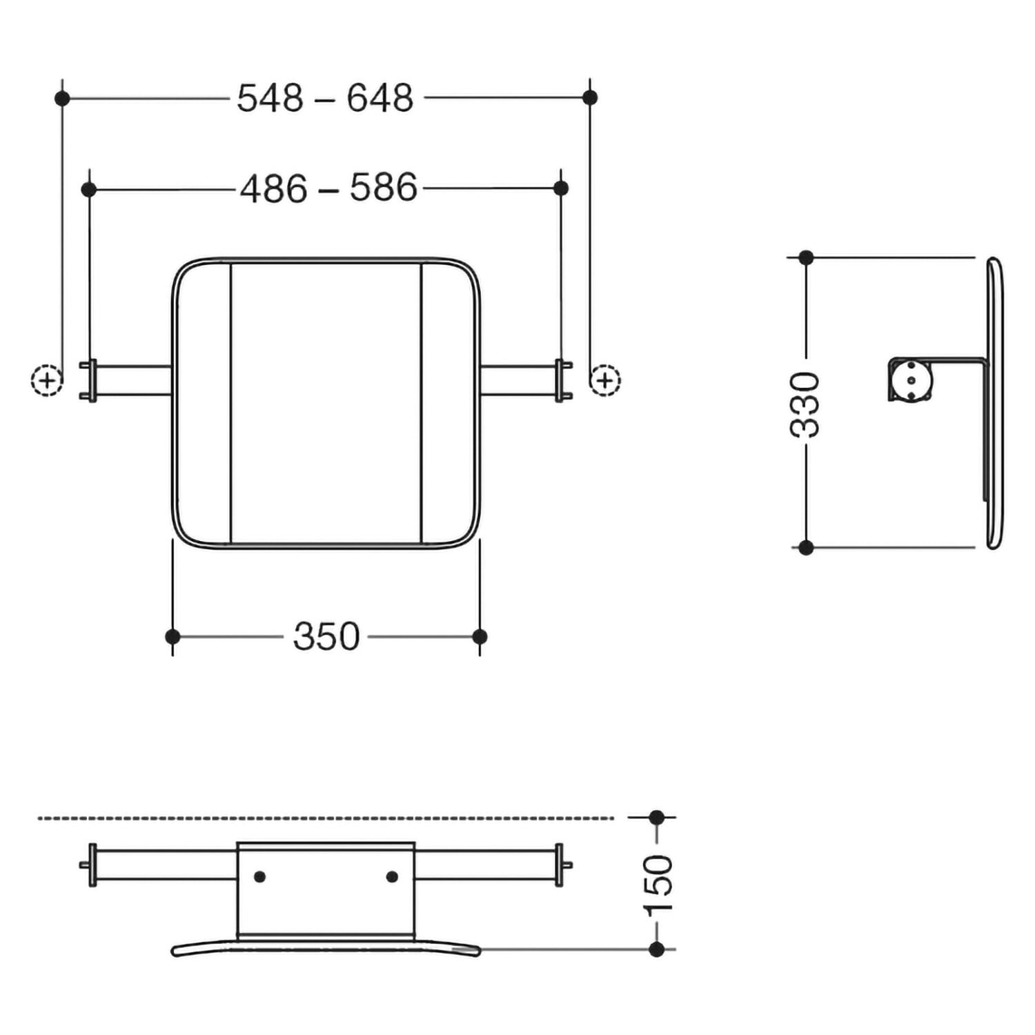 HEWI System 900 Rückenstütze Design A, Achsmaß 48,6 bis 58,6 cm
