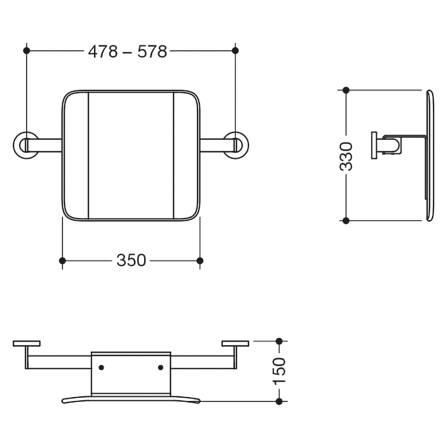 HEWI System 900 Rückenstütze Design A und B, Achsmaß 47,5 bis 57,8 cm