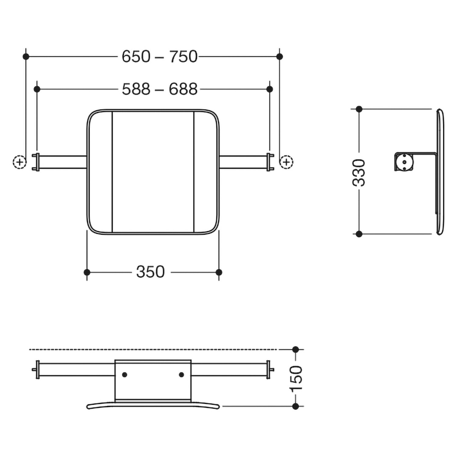 HEWI System 900 Rückenstütze Design A, Achsmaß 58,8 bis 68,8 cm