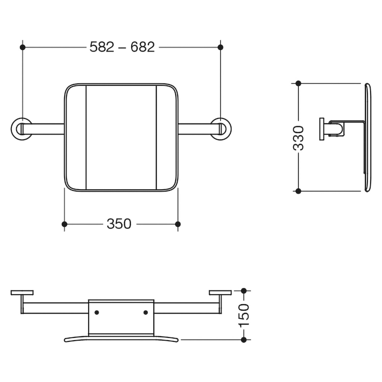 HEWI System 900 Rückenstütze Design A und B, Achsmaß 58,2 bis 68,2 cm
