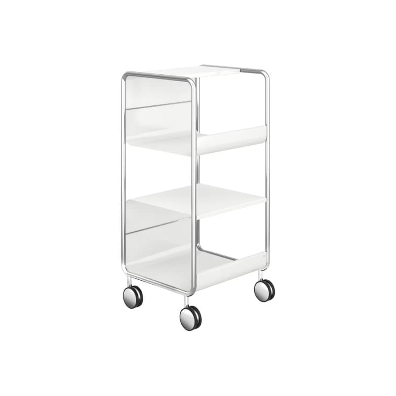 - mit 4 verchromten Rollen für einen flexiblen Einsatz, davon 2 feststellbar