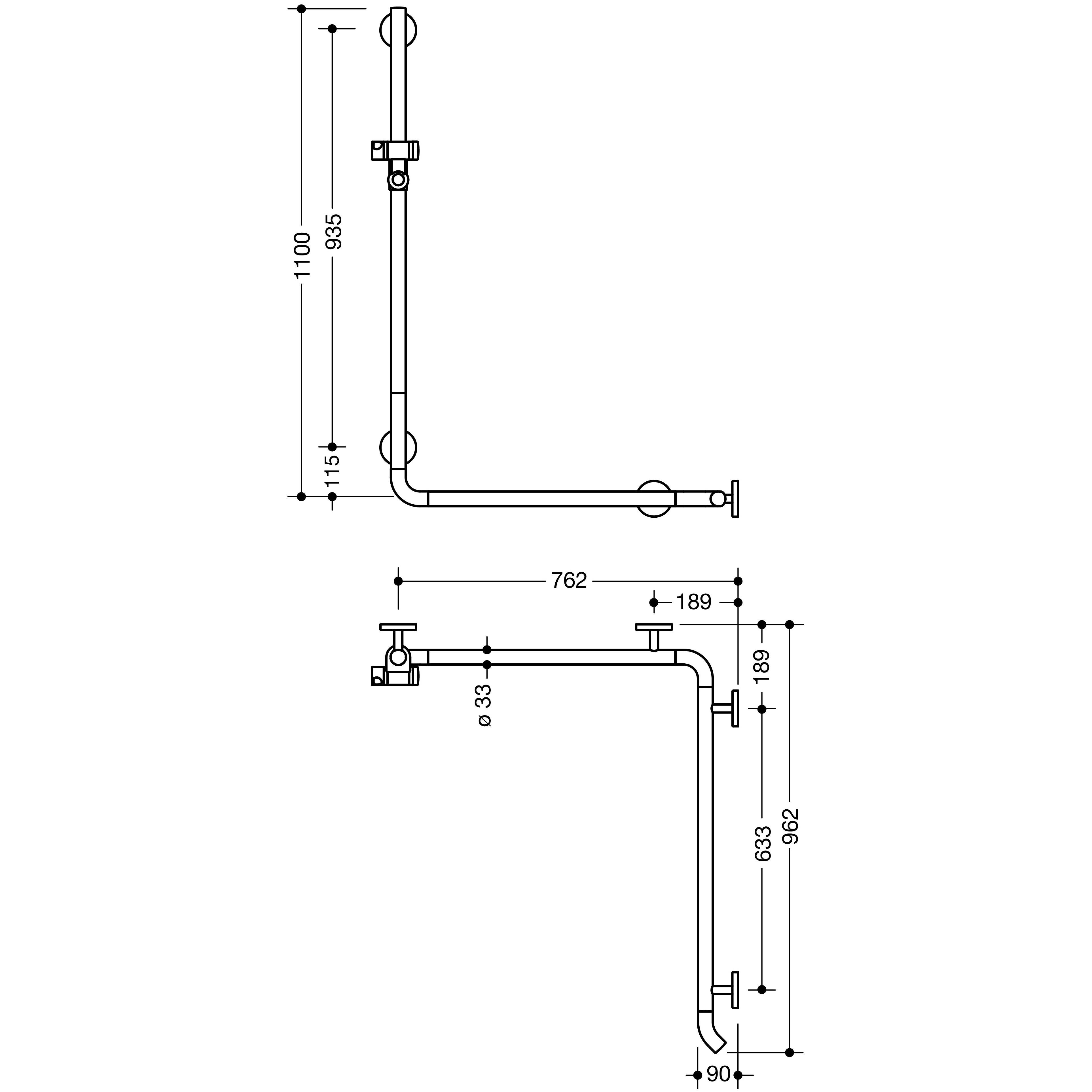 HEWI Warm Touch Duschhandlauf mit Brausehalterstange, 110 x 76,2 x 96,2 cm
